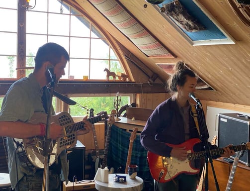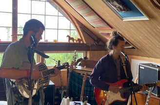 to søsken synger på trøndersk og spiller gitar